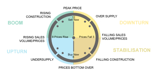 The following diagram illustrates the 4 quadrants of the property cycle/clock.